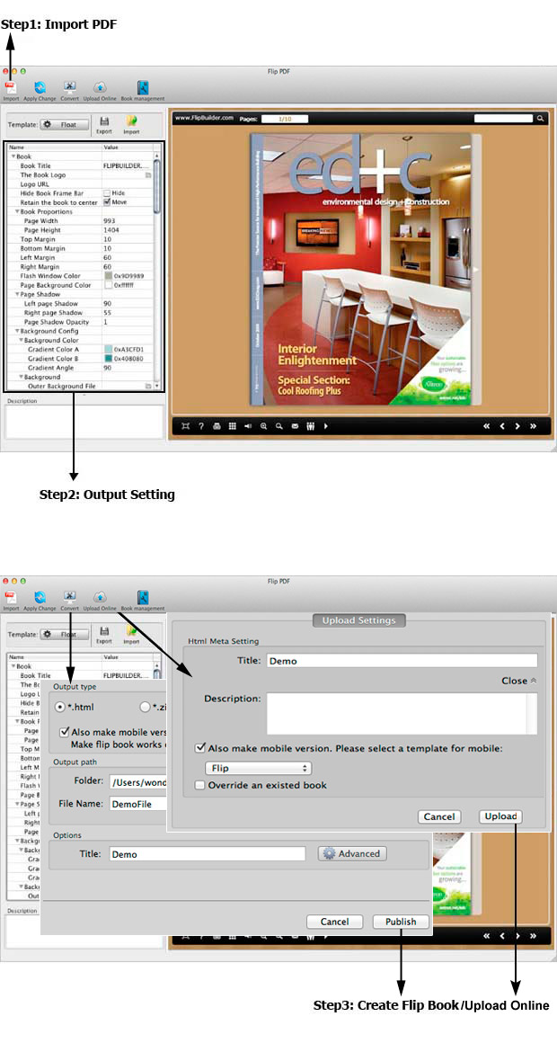 A diferencia de otros programas de la serie Flip, Flip PDF para Mac es un software para funcionar especialmente en dispositivos de Mac, Mac OS X Leopard, Mac OS X Snow Leopard, Mac OS X Lion, etc. La versión para Mac proporciona el modo de conversión eficiente y maravilloso que le permite personalizar su estilo